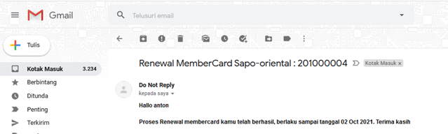 Note : setelah di save status member maka aplikasi akan mengirim emal notifikasi ke member