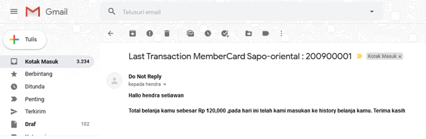 Note : setelah di save Total belanja maka aplikasi akan mengirim emal notifikasi ke member