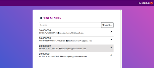 1. untuk melihat list member maka anda klik menu Daftar Member :