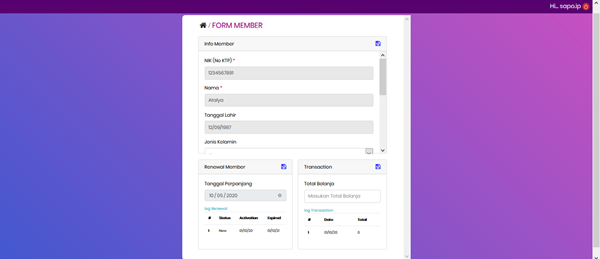7. Input Total Belanja member (dengan memasukan total belanja) :